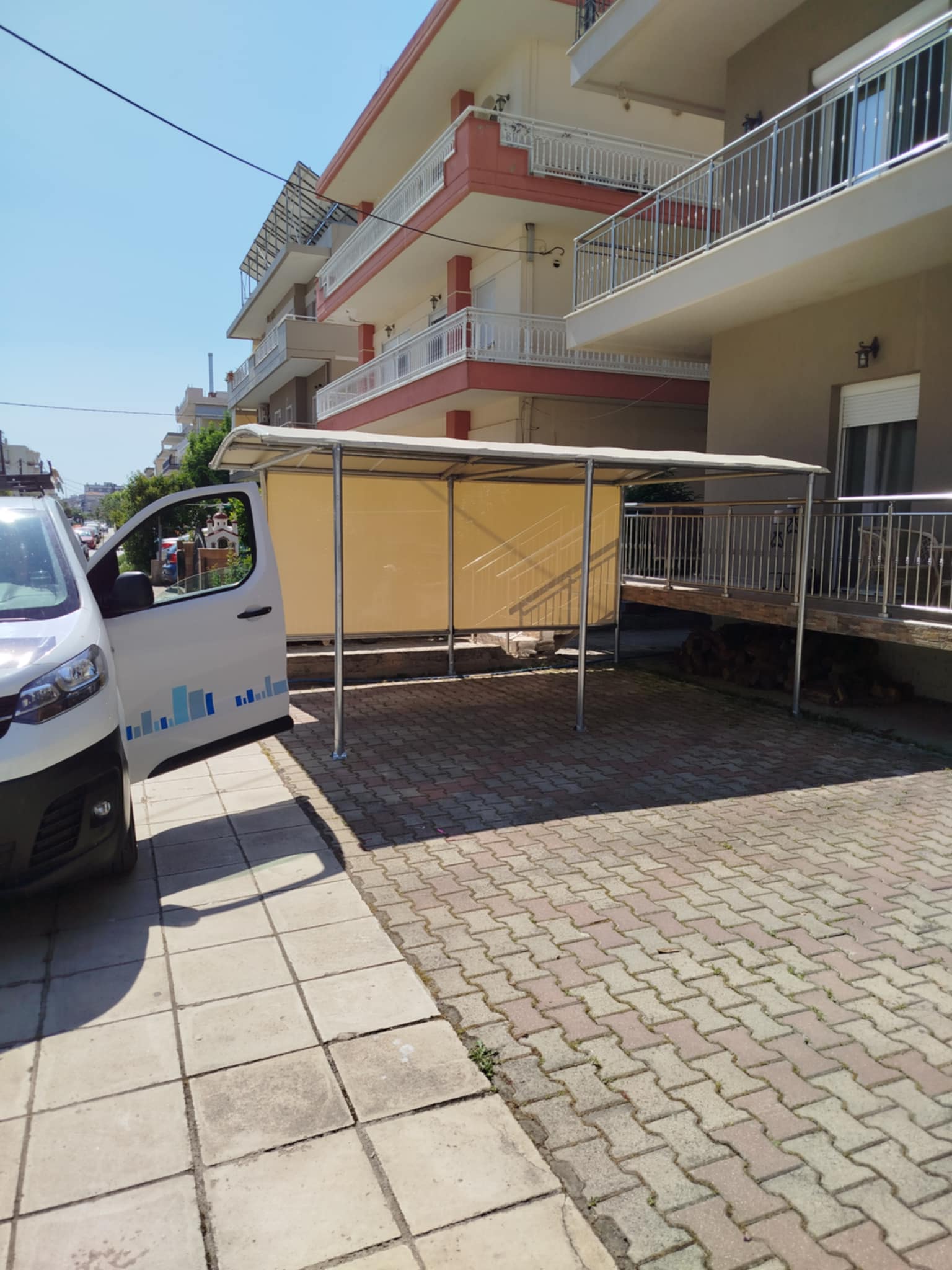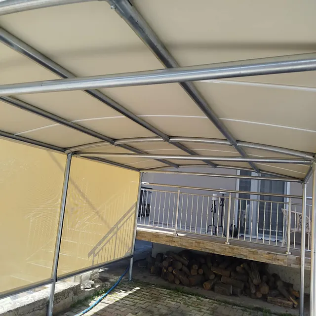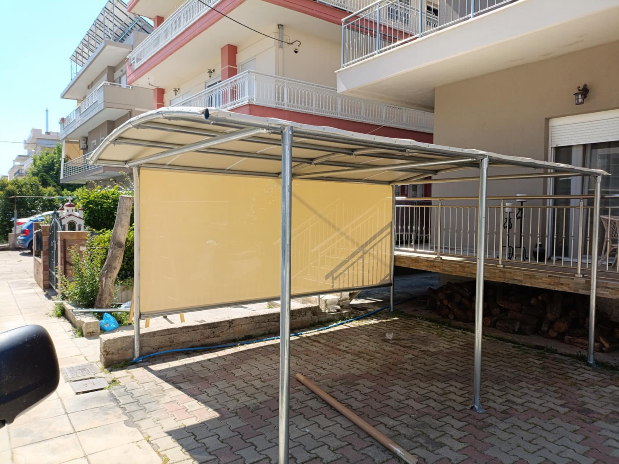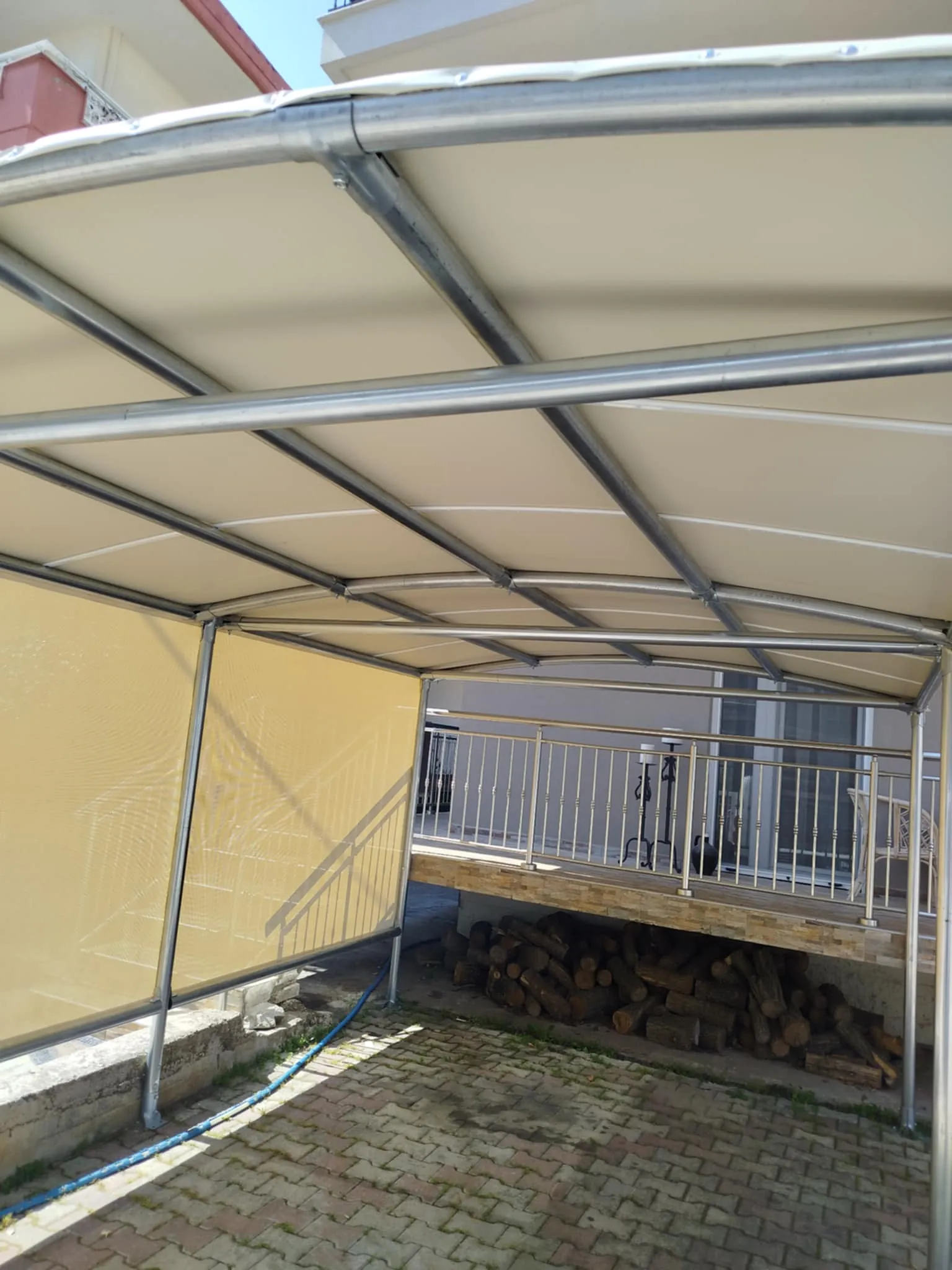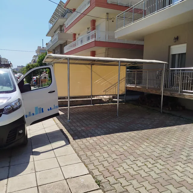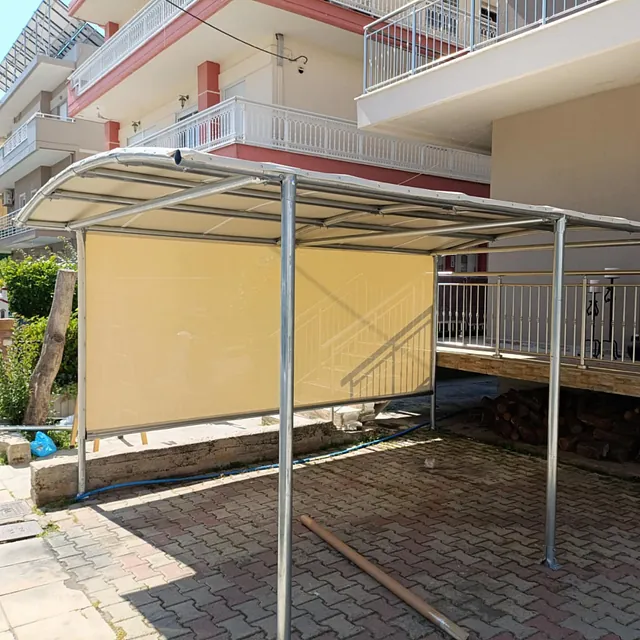 Συνδυασμός σταθερής μεταλλικής κατασκευής με τέντα, προσφέροντας μεγάλη κάλυψη και στιβαρότητα.